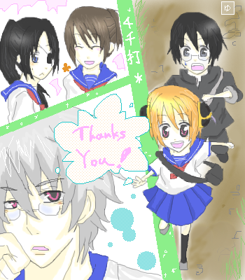 あ、4000hit感謝絵完成いたしましたー!!絶賛フリー中です\(*^▽^*)/うへへ